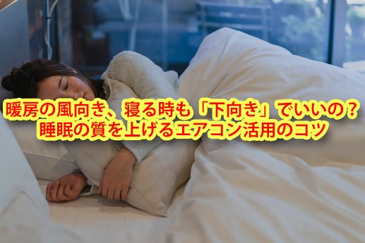 エアコン暖房の風向きは、「活動時は下向き、就寝時は上向き(水平)」が鉄則です。